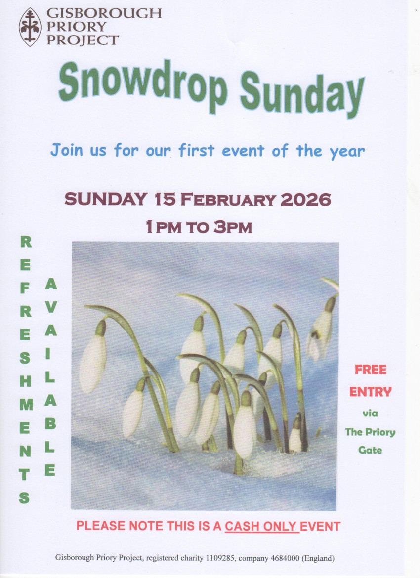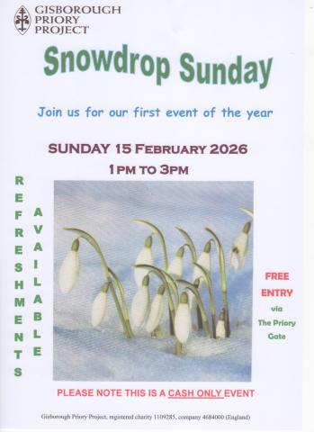 Guisborough Priory's special out-of-season opening to see the carpets of snowdrops is on Sunday 15 February 13:00 - 15:00.