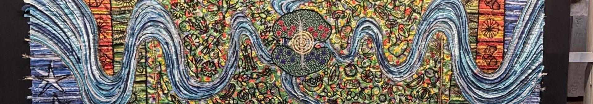 Created with hand-dyed silks, metallic threads, gold leaf and millions of stitches, Jacqui's work combines breathtaking scale with exquisite detail.